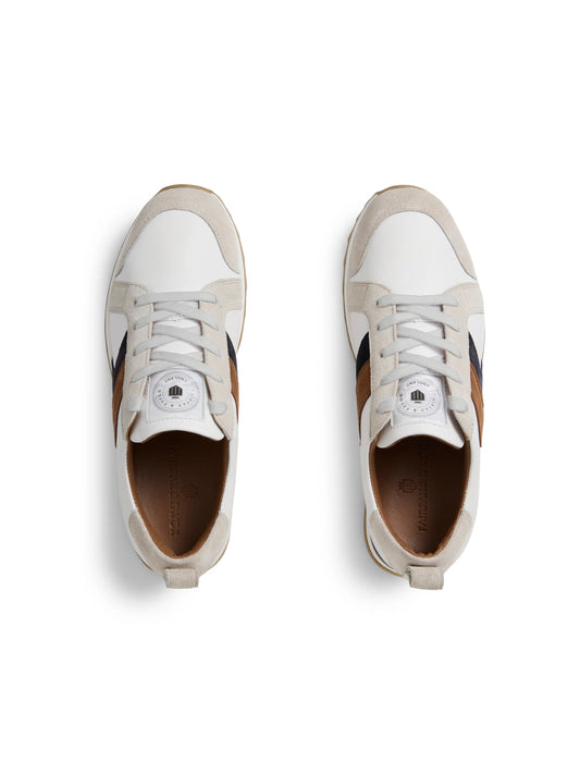 Xandra Trainer - White Leather with Tan & Navy