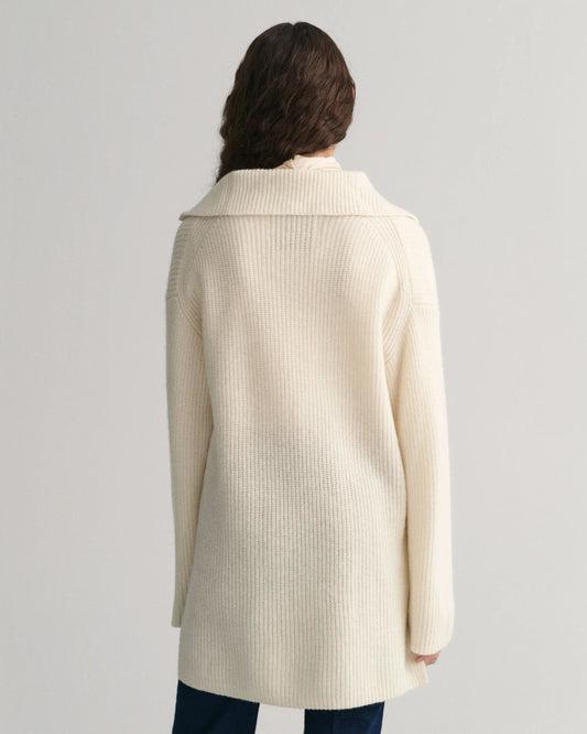 Ribbed Wool Half Zip Sweater - Cream