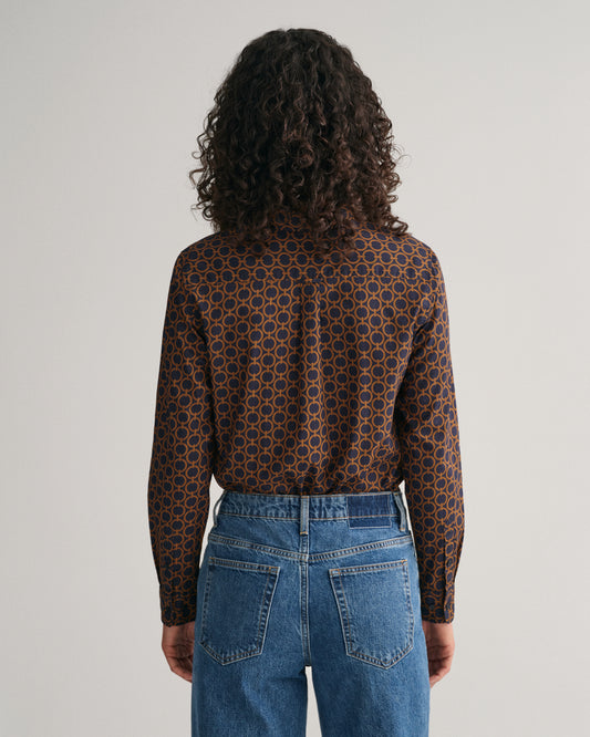 Regular Fit Geometric Cotton Voile Shirt - Evening Blue