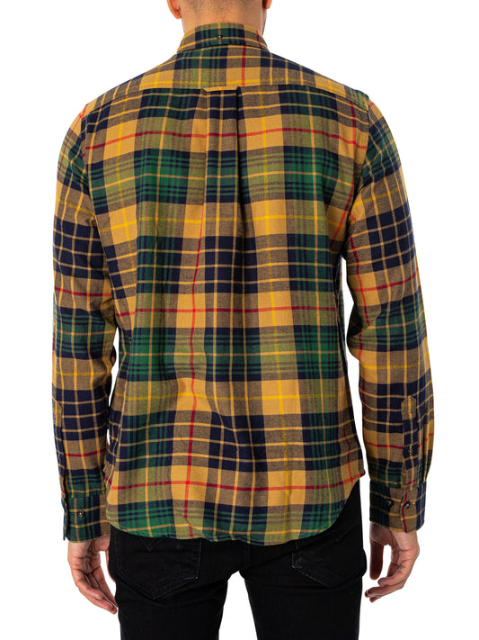 Regular Fit Plaid Flannel Check Shirt - Mustard Beige