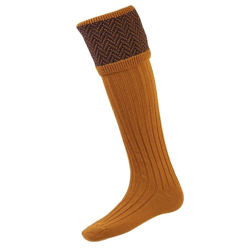 House Of Cheviot Herringbone Socks. Made from a Merino wool blend, these knee length socks feature a classic contrast Herringbone pattern.