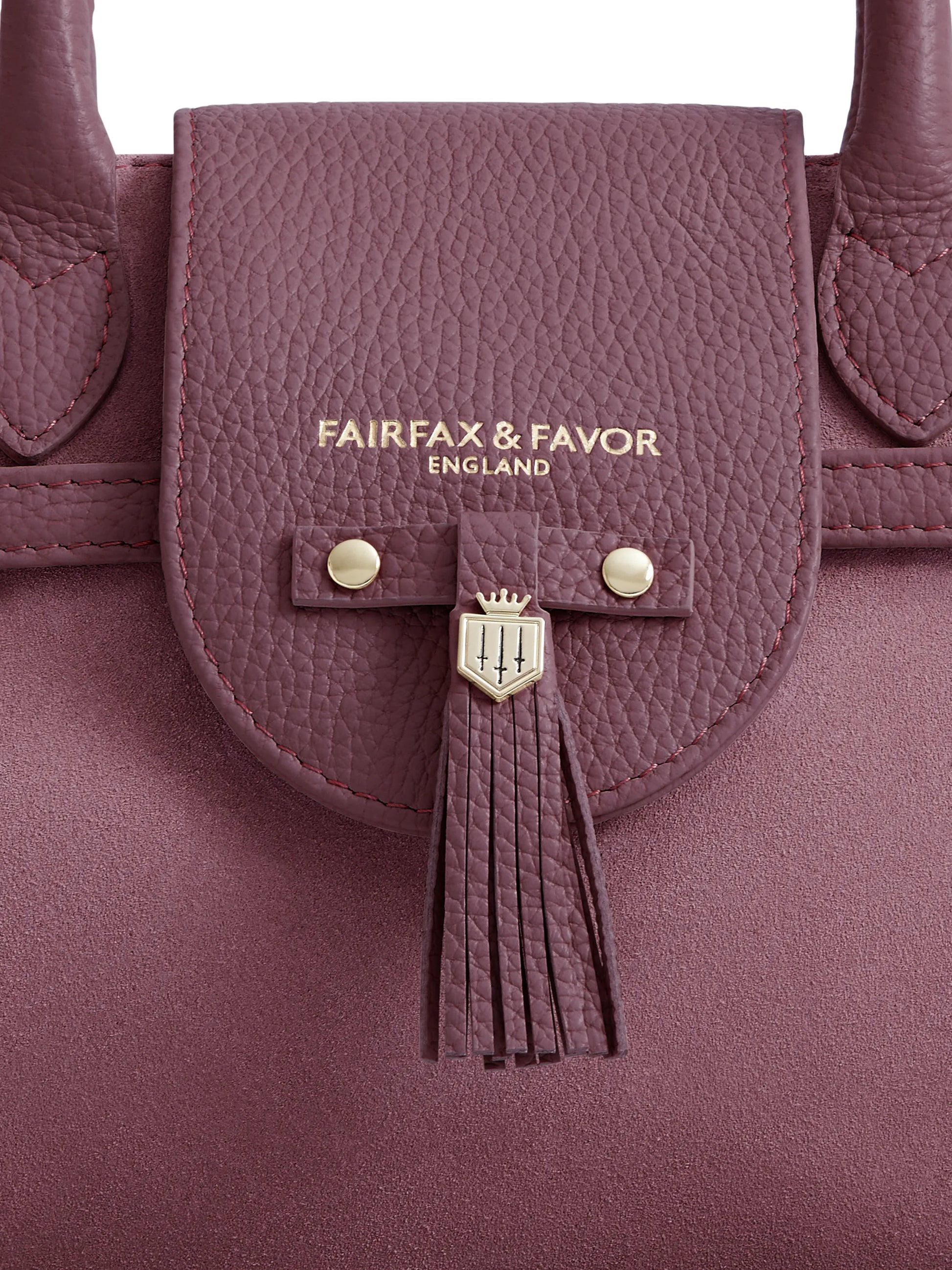 Handcrafted individually in premium suede and leather, branded styling touches include Fairfax & Favor's iconic mini tassel - interchangeable to complete your outfit and a nod to their signature boots – a gold foiled logo and chevron buckle. The microfibre-lined large compartment, internal zipped pocket and gold studded base complete the appeal.
