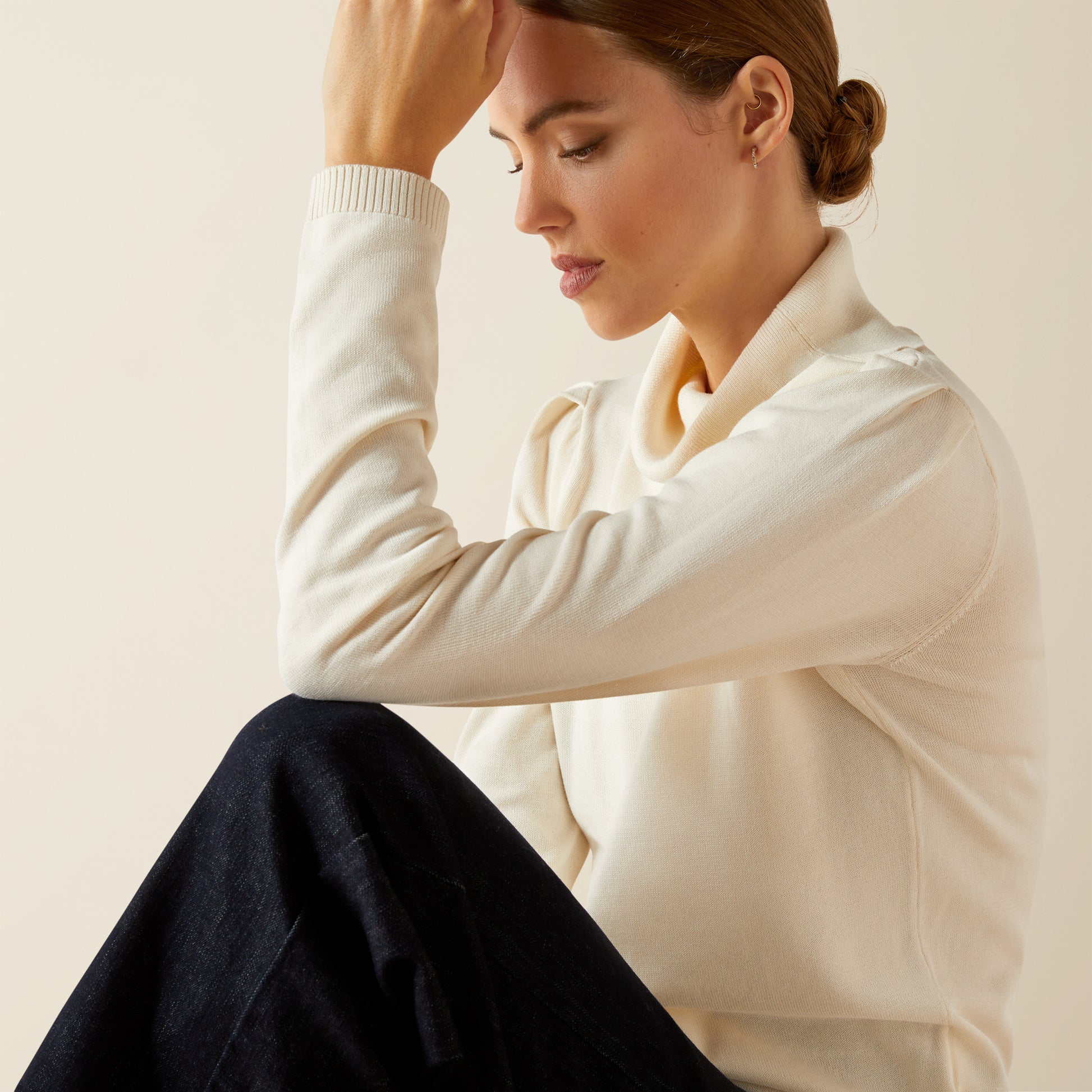 So perfectly chic, this soft knit sweater is made from U.S.-grown Supima® cotton with feminine pin-tucks at the shoulders. Paired with an equestrian-inspired bit detail beneath the drapey turtleneck, Aldergate is a piece you'll fall in love with.
