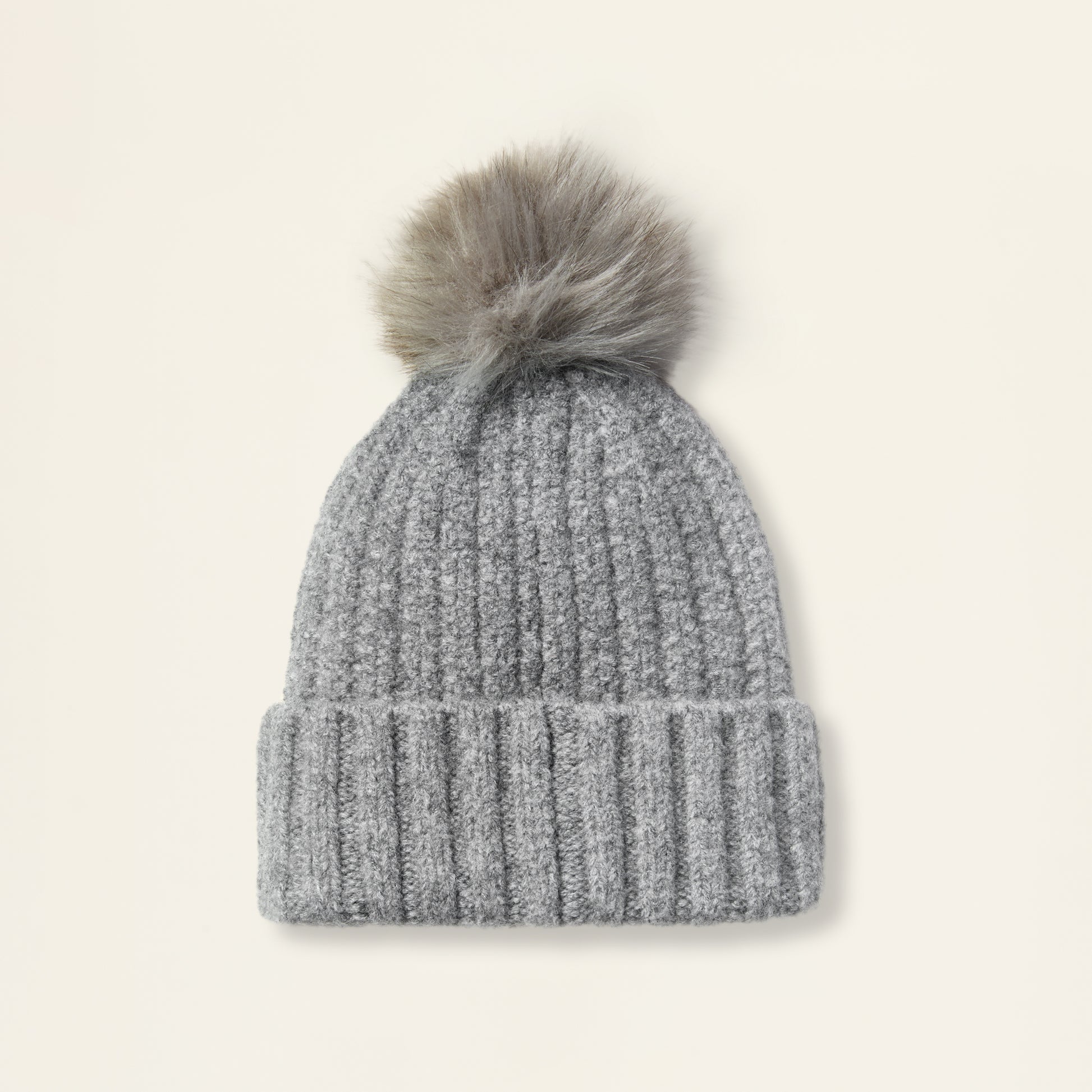 Crafted from a recycled fabric blend, this supremely soft beanie puts a feel-good spin on a winter weather staple. The classic knit pattern has a faux fur pom pom for a premium finish.