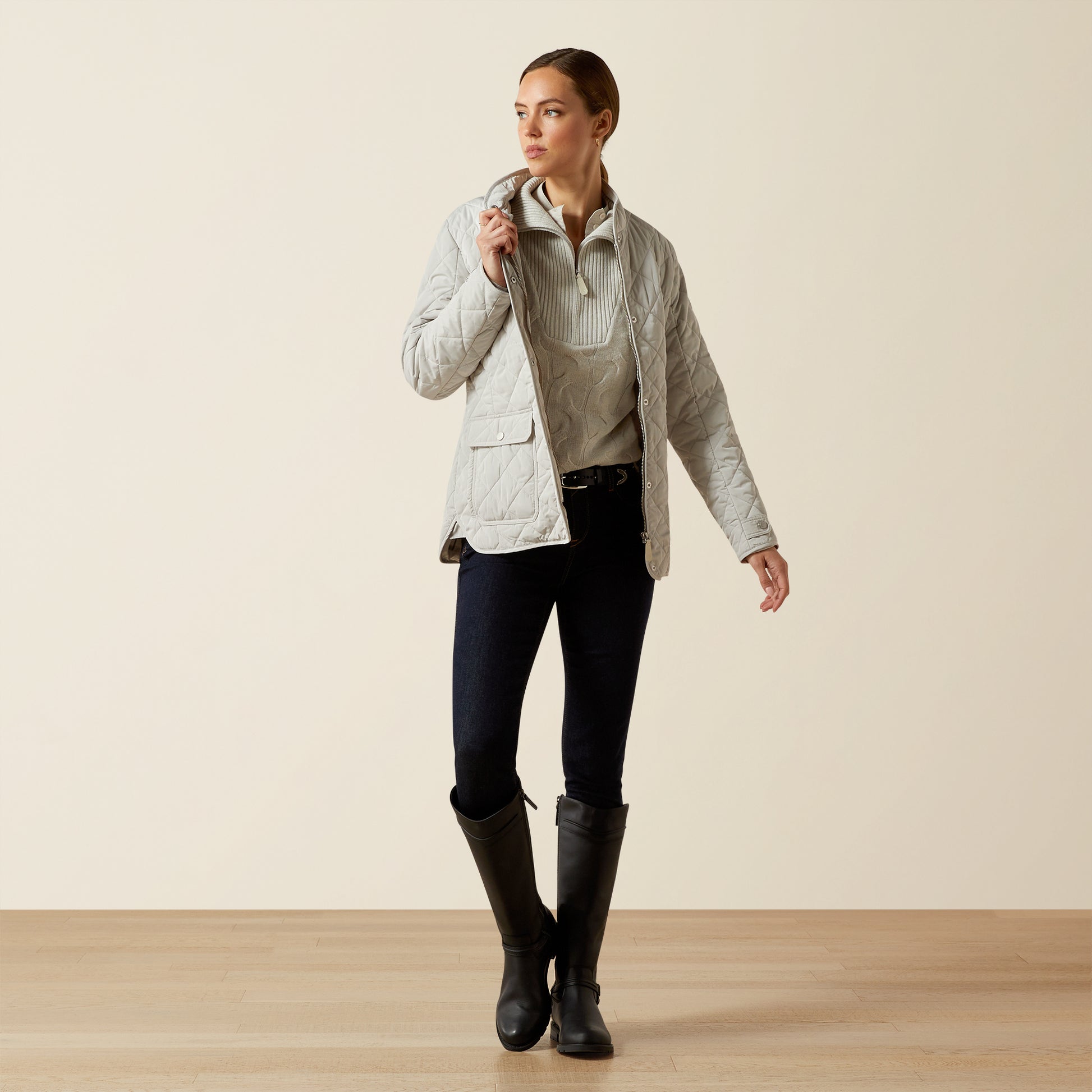 The Woodside is a timeless quilted silhouette, with a fun printed lining and handy patch pockets. Hitting at the low hip, it features an adjustable belt for a tailored look, a zippered placket with logo-snaps, and adjustable snap-closures at the cuffs. Constructed from 100% recycled polyester shell with EcoDry™ finish and Primaloft® recycled insulation to keep out the elements.
